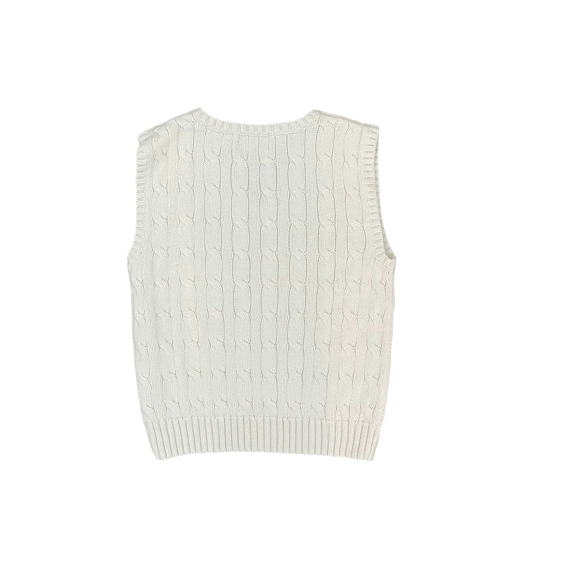 Cream cable knit vest with signature pony logo in navy