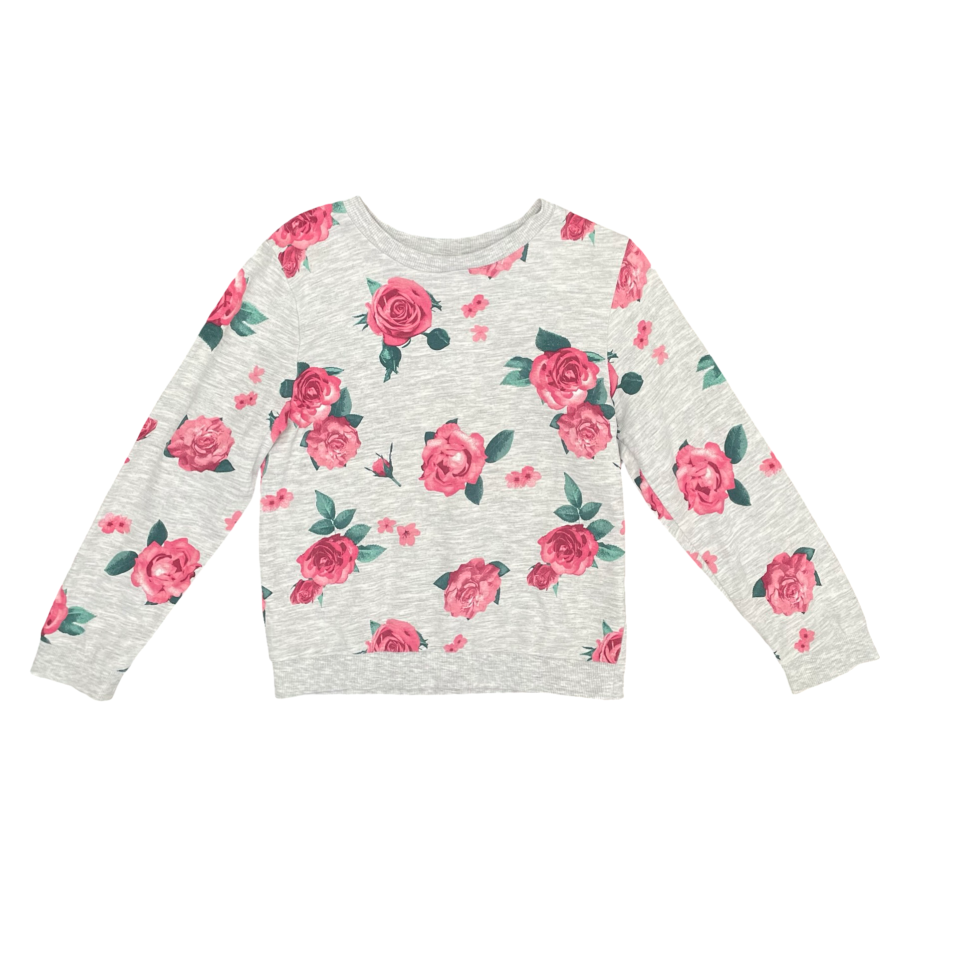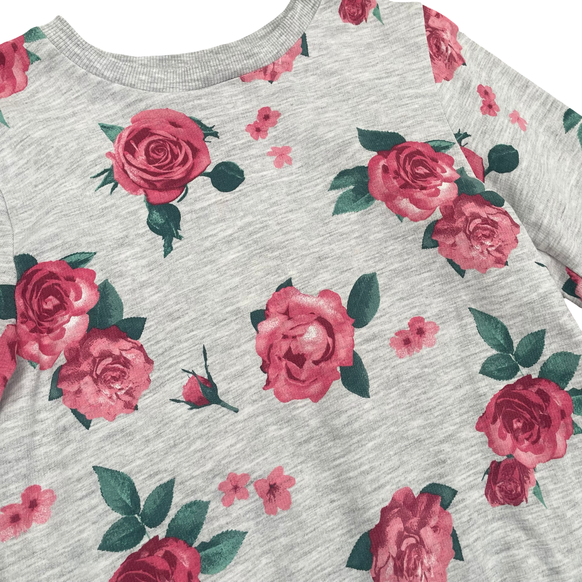Crew neck sweater with allover rose print