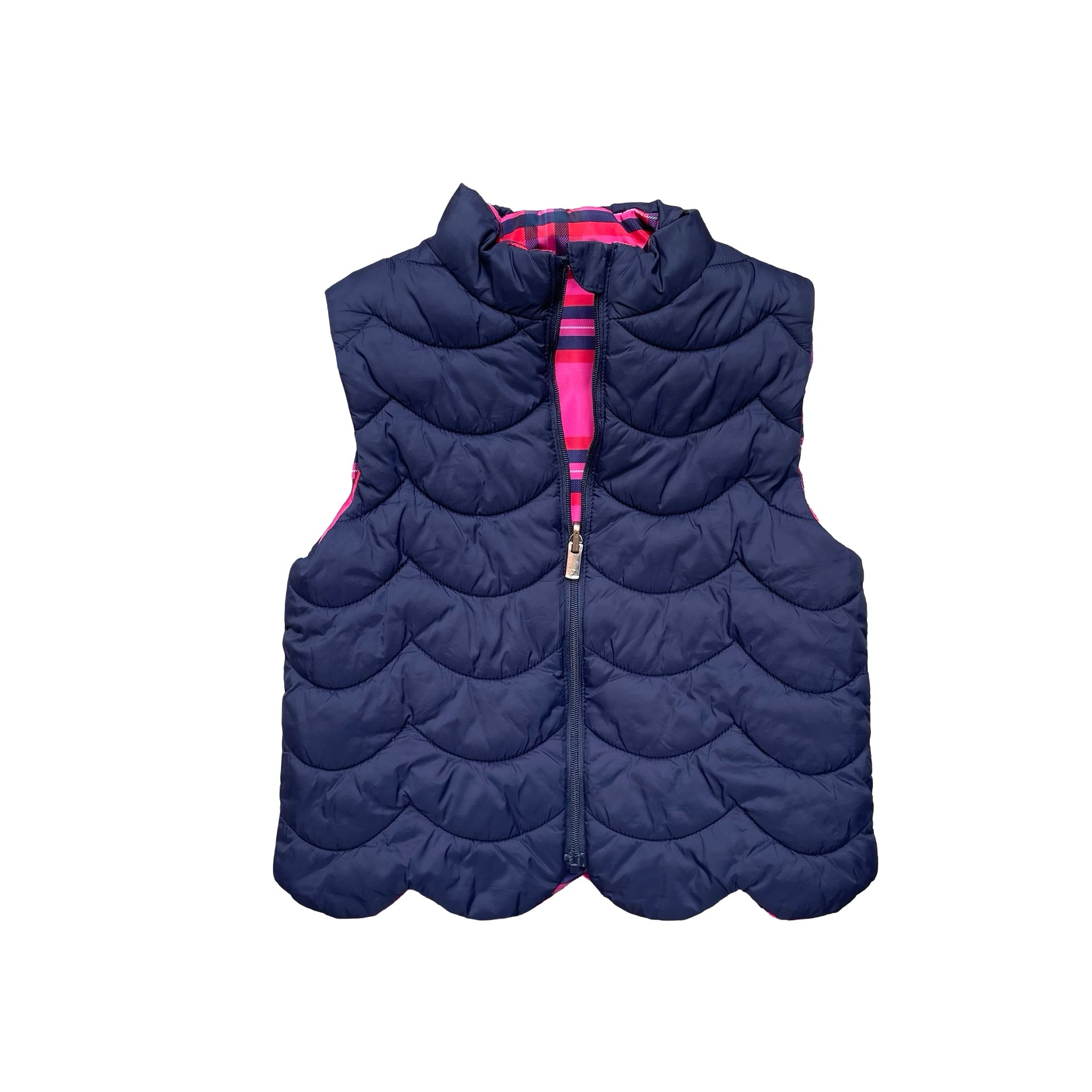 Keep them warm with this reversible Jacadi puffer vest. Plaid on one side and navy on the other.